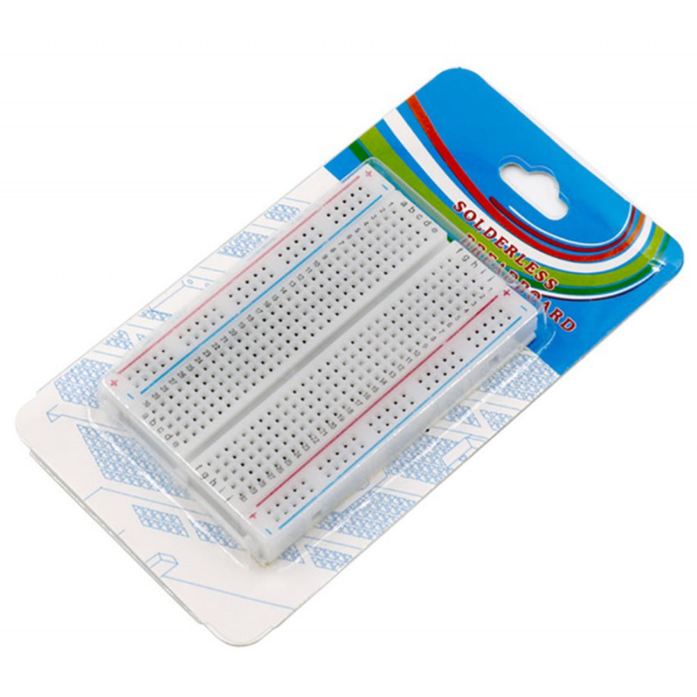 Size and Layout: This breadboard typically measures around 3.5 inches by 2.2 inches, making it highly portable and suitable for small-scale projects. It features a grid of 400 tie points arranged in rows and columns.