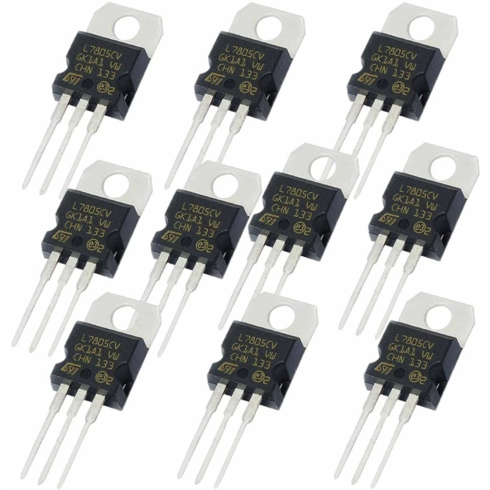 The LM7805 is a widely used three-terminal positive voltage regulator IC that provides a fixed output voltage of 5 volts. This set of 10 LM7805 ICs is designed to regulate and stabilize voltage in electronic circuits, ensuring a constant 5V output with a maximum current handling capability of 1 ampere.
